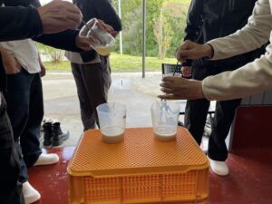 澱はかなり重く、とくに女性は一苦労の様子です。毎週この作業をするだけでもそれなりの力仕事だなという実感ですね。