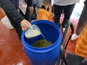 次は、実際に酵母添加(イノキュレーション)を体験しました。