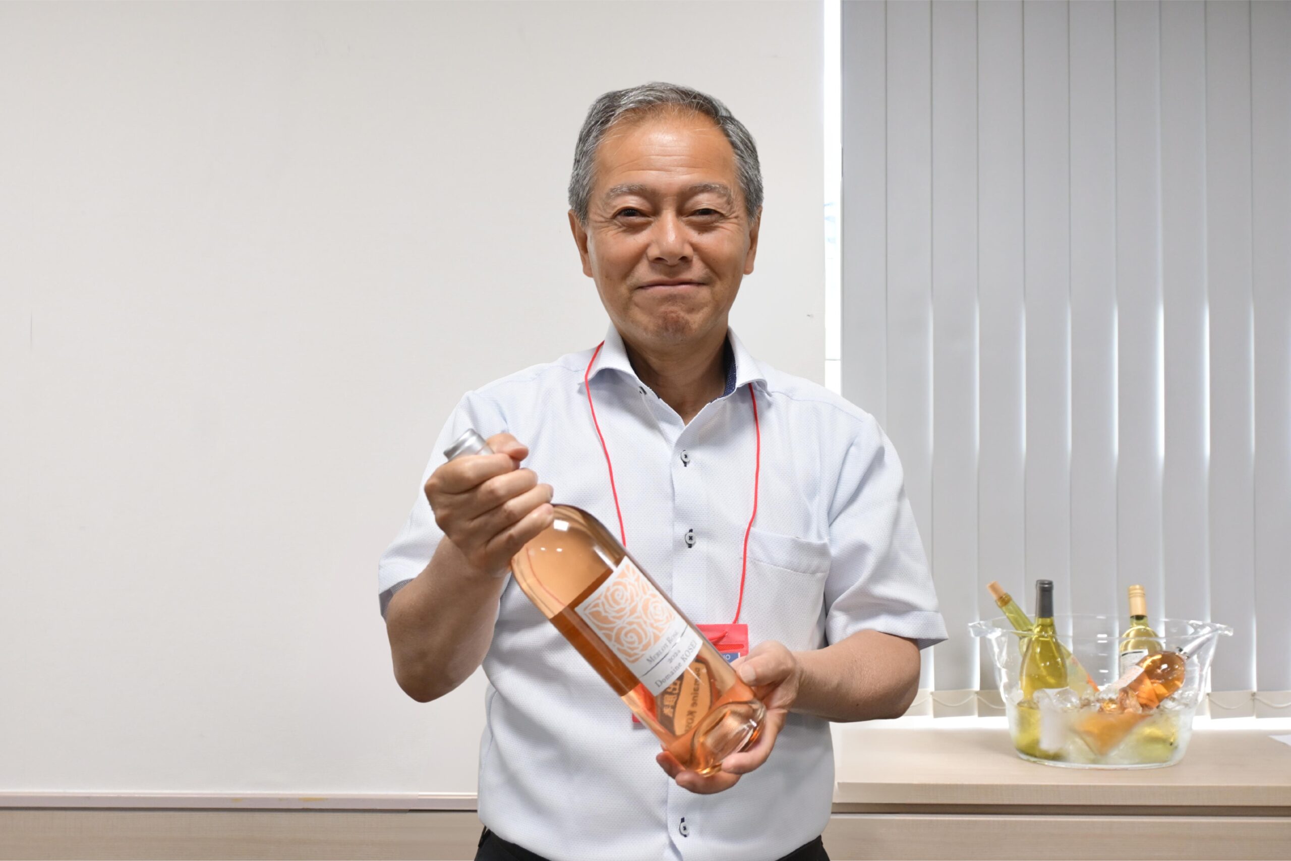 日本のエッセイストであり画家である玉村豊男さんと現代表取締役社長の小西超さんが2003年に設立した東御市初のワイナリー。ここから巣立った生産者が50名超という先駆者的存在で、良質なピノ・ノワールを生産している。「今回おすすめしたいのは自社畑のピノ・ノワールを100%使用したロゼ。味わいは辛口であるものの、イチゴなどのフレッシュでほんのり甘いフルーツの香りがして、全体はやさしい印象に仕上がったかなと。キリッと冷やして、ぜひ明るい時間から楽しんでほしいワインです。合わせる料理ですが、中華料理に、特にエビチリに合うと言われたことがあります」(小西さん)「冷やしたロゼとエビチリ……夏に最高ですね。暑さを吹き飛ばすスッキリ感、本当に夏にぴったりなロゼワインだと思いました」(宮坂さん)
