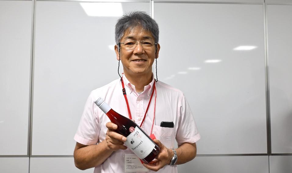 「今日のイベントに参加のワイナリーの中で、一番南の長野エリアから来ました」と語るのは醸造家の竹村剛さん。りんごを代表とする果樹栽培が盛んな、長野県松川町南信州(南信地区)にあるワイナリーで、日本アルプスの山々に囲まれた自然豊かな環境でシードルとワインをつくっている。「夏におすすめする赤ワイン『編』は、南信州・自社畑産のシラー、メルロー、カベルネ・フランと、安曇野市産のカベルネ・フランをブレンドした優しい味わいの1本です。合わせる料理としては、ラムなどによく合うかなと思います」(竹村さん)。黒い果実にほんのりと効いたスパイスの香り、シルキーなタンニンが感じられる。「確かにラムに、すごく合いそうです。個人的に、凄く好きな味わいの赤ワイン。夏、スタミナが足りないときにラムと合わせて飲みたいと思いました」(宮坂さん)
