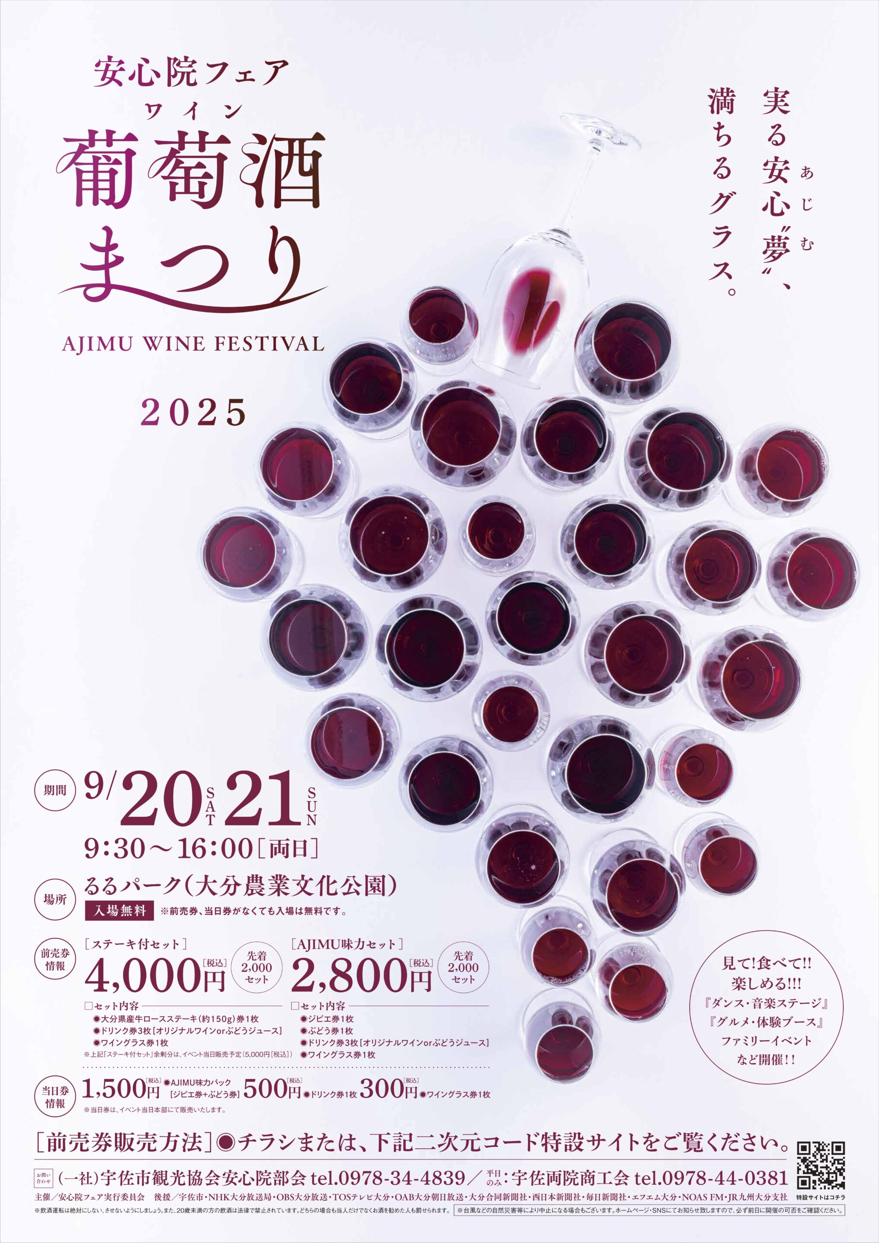 2025年9月20日(土)・21日(日) の2日間、「るるパーク(大分農業文化公園)」を会場に、安心院フェア「葡萄酒まつり2025」が開催されます。