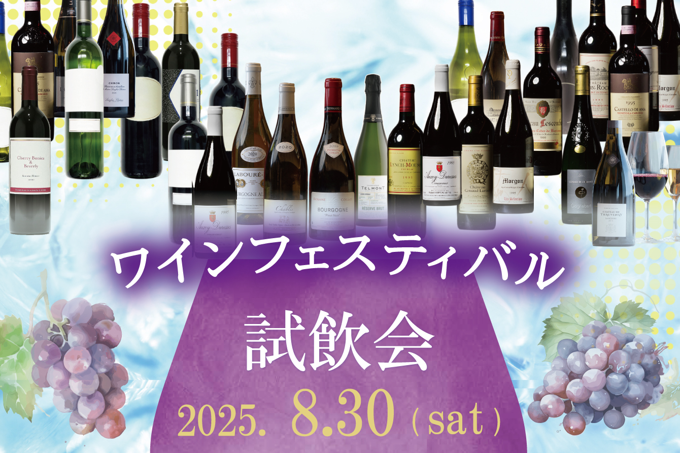 2025年8月30日(土)、ホテルグランヴィア岡山の宴会場「フェニックスの間」にて『第3回 ワインフェスティバル』が開催されます。