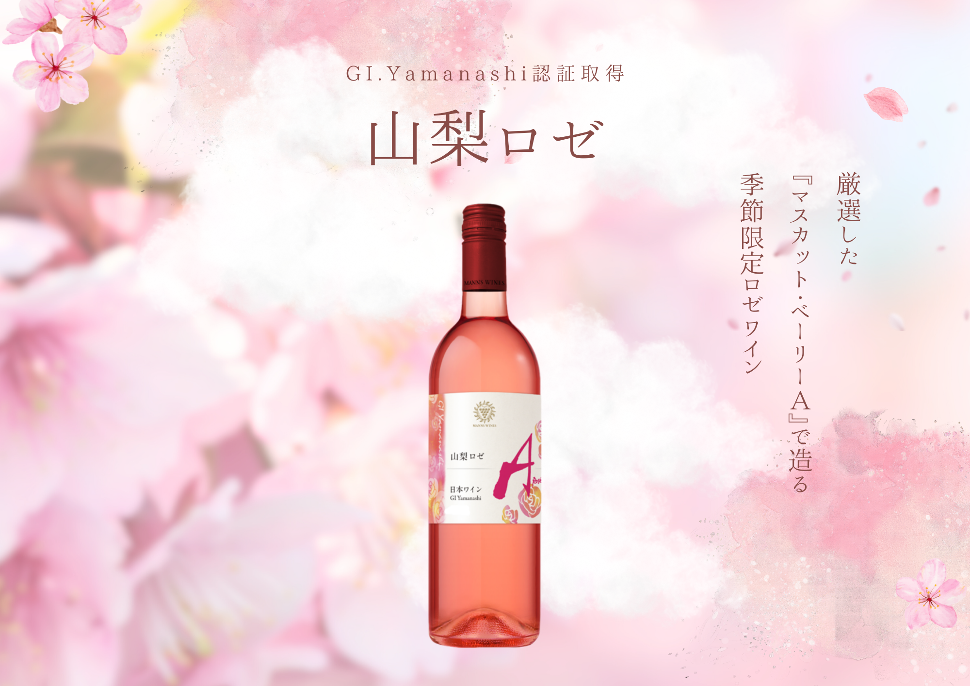 「GI山梨 ロゼ 2025」は、山梨県内で収穫された特に高品質なマスカット・ベーリーAを使用した美しいロゼ。