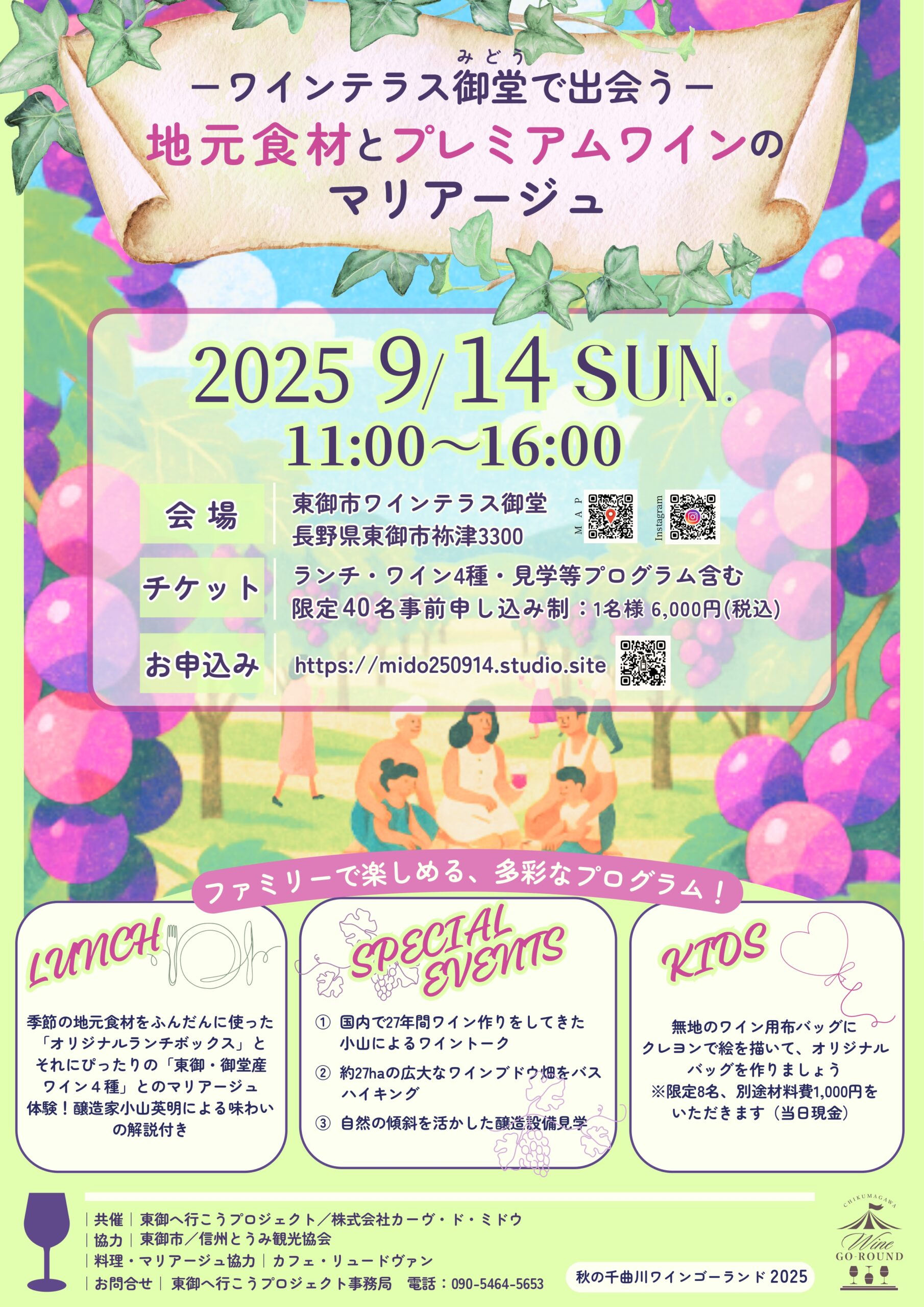 共催 :東御へ行こうプロジェクト(代表:松岡有紀)、株式会社カーヴ・ド・ミドウ(代表:小山英明)