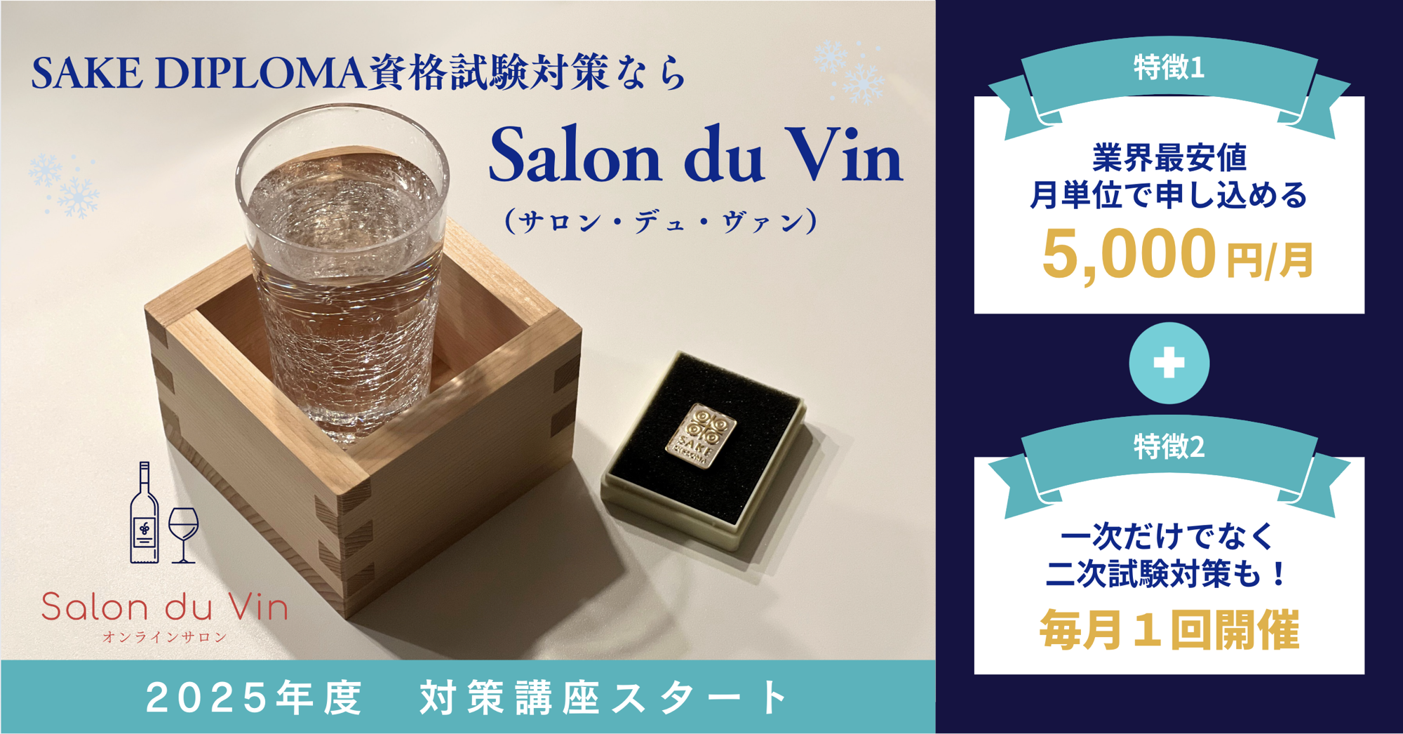 オンラインサロン『Salon du Vin(サロン・デュ・ヴァン)』では、日本ソムリエ協会が運営するSAKE DIPLOMAの資格試験を受験するための2025年度のオンライン試験対策講座を2025年3月から開講。