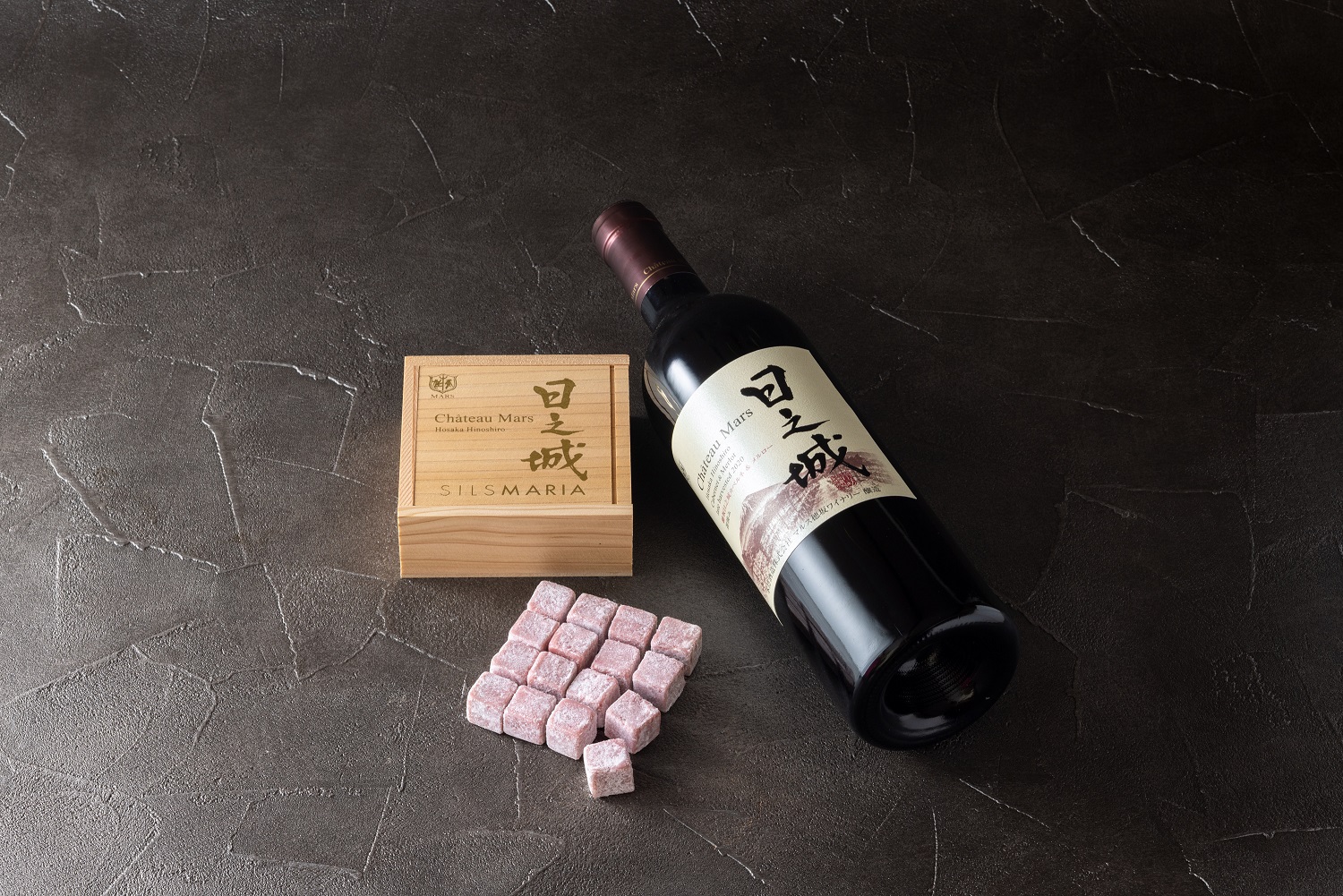山梨県韮崎市穂坂町にある「マルス穂坂ワイナリー」でつくられた、長期熟成型のプレミアム赤ワイン『穂坂日之城 カベルネ&メルロー 遅摘み』を使用した生チョコレート『SILSMARIA(シルスマリア)』です。