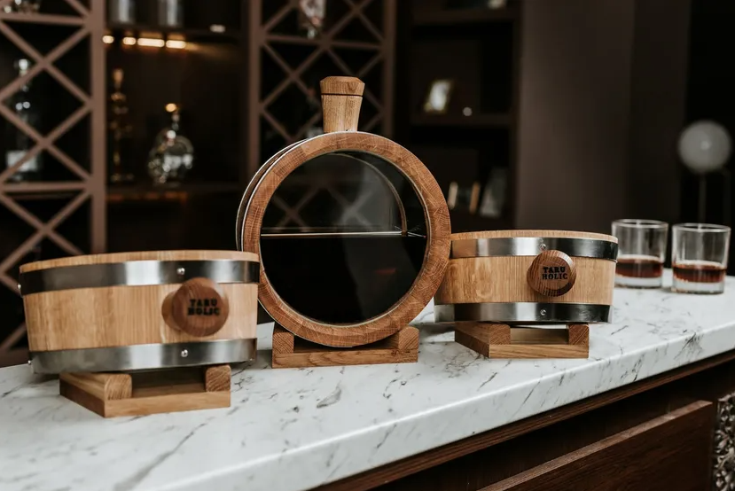 ウクライナ製ヨーロピアンオーク材を使用した熟成樽は、お酒の風味を深め、まろやかでリッチな味わいを実現。