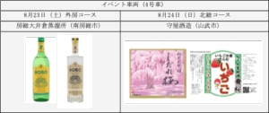 さらに、イベント車両(4号車)では、日替わりで千葉県産サトウキビを使用した南房総生まれのラム酒や、山武市に酒蔵を構える守屋酒造が提供するイチゴ酒のリキュールなどもお楽しみいただけます。