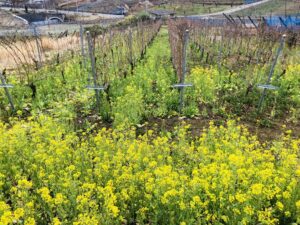 畑では メルローとタナを1列ごとに植える“混植形式” も試みていらっしゃり、品種ごとの相性や土地の特性を探りながら栽培に挑戦されています。