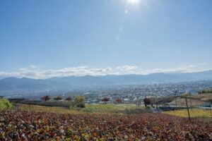 秋色に染まった山々、赤く紅葉した甲州の葉がひときわ美しい時期にお邪魔しました。