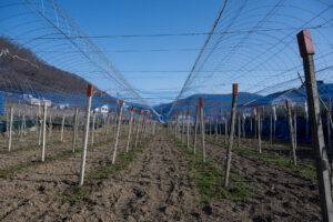 塩尻は砂礫の砂っぽい土壌が多いのと比べ、この辺は森林に囲まれており粘土質で、土の質がとても硬いそう。その分根を張ってくれるんじゃないかと吉田氏は期待します。