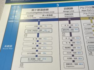 松本駅の東口(お城口)を出て、アルピコプラザ前のバスターミナルから乗車。整理券最初に取るタイプです!