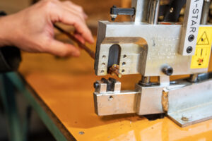 須田葡萄苗圃の接ぎ木機は、ドイツ製、オメガ型に噛み合う機械を使用しています。